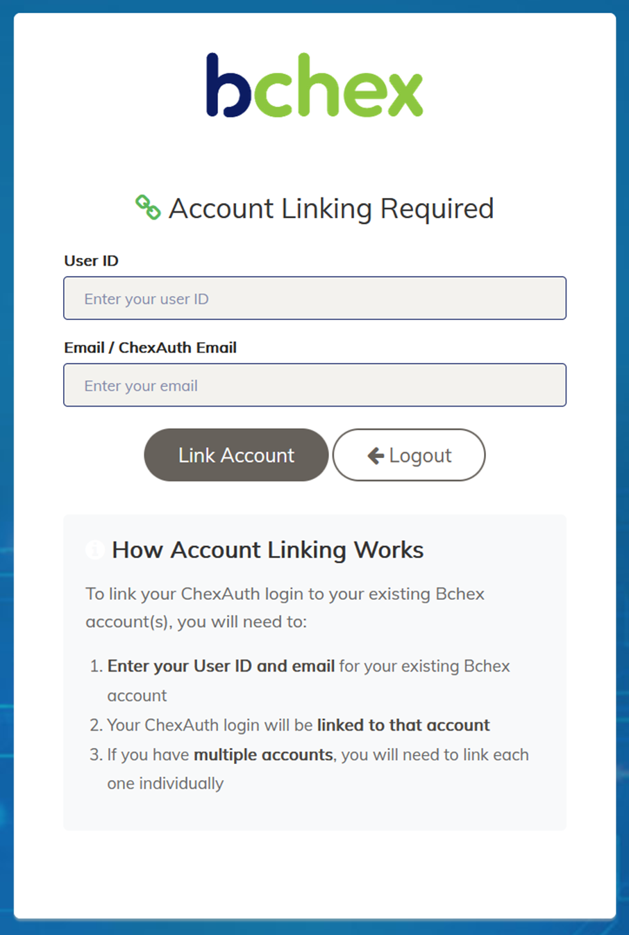 If you have access to multiple accounts, they can all be linked to the same ChexAuth email.