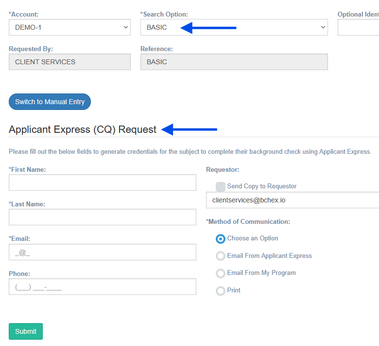 Note: Applicant Express is currently available only for background check orders and not for occupational health services.