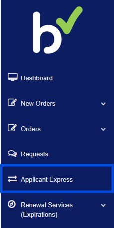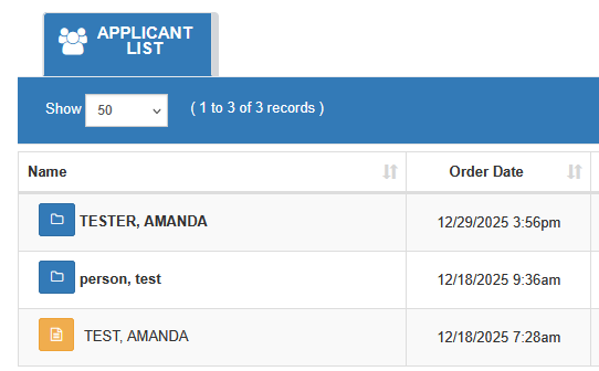Once the applicant completes the application, their name will no longer appear in the Applicant Express list. Instead, the order will move to Background Check Orders.