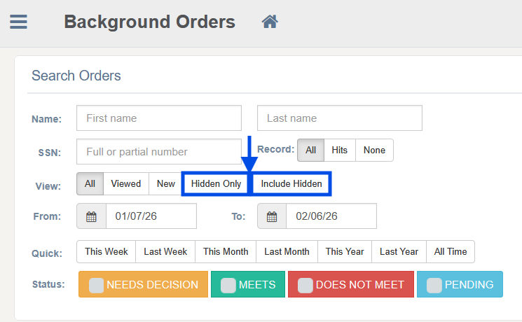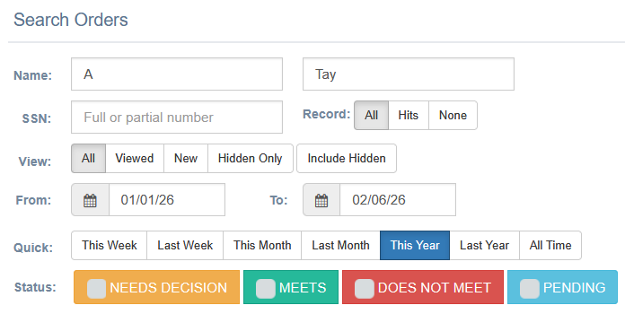 If you’re having trouble locating a background check order in Aegis, try the steps below. In most cases, one of these options will help surface the order you’re looking for.