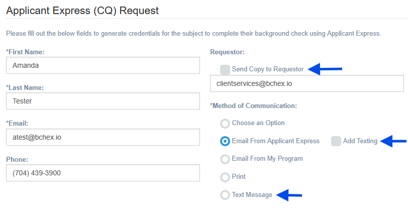 Note: Applicant Express is currently available only for background check orders and not for occupational health services.
