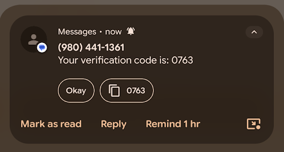 You’ll receive a text message with a verification code.