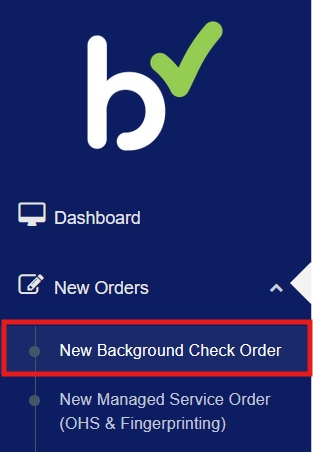 Navigate to New Orders > New Background Check Order using the left navigation panel.