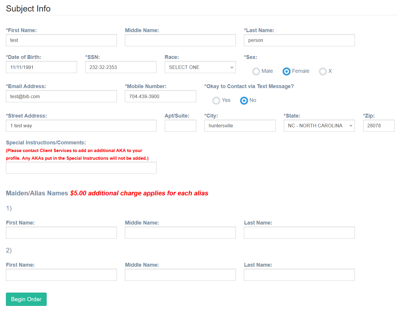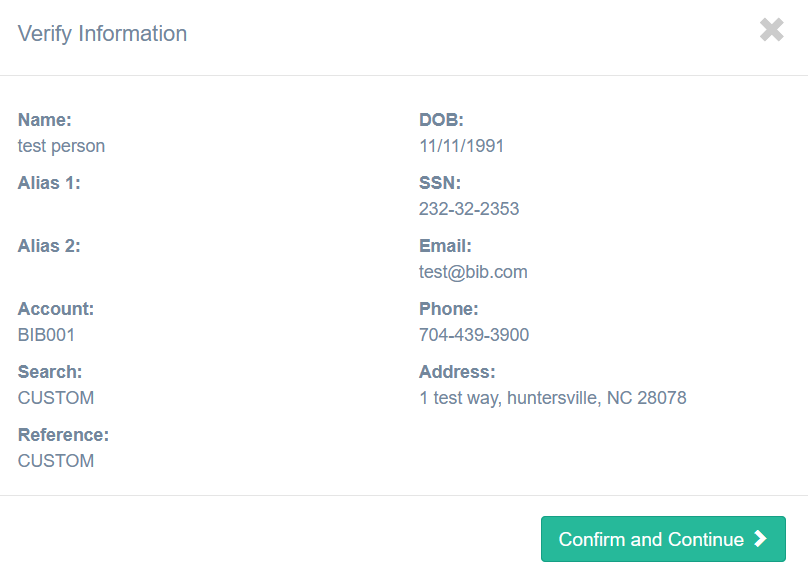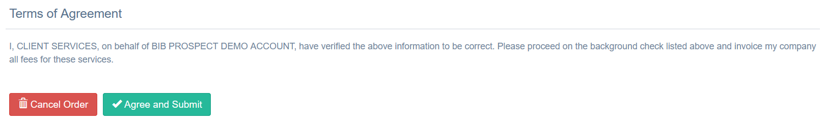 When you click Begin Order, a confirmation window will appear asking you to verify the candidate’s information before proceeding. Please review all details carefully.