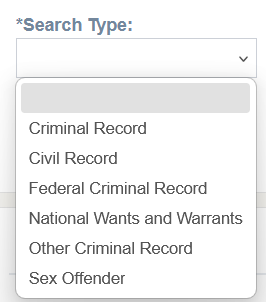 You’ll first choose the type of search you need (e.g., Criminal Record, Federal Criminal, Civil Record).
