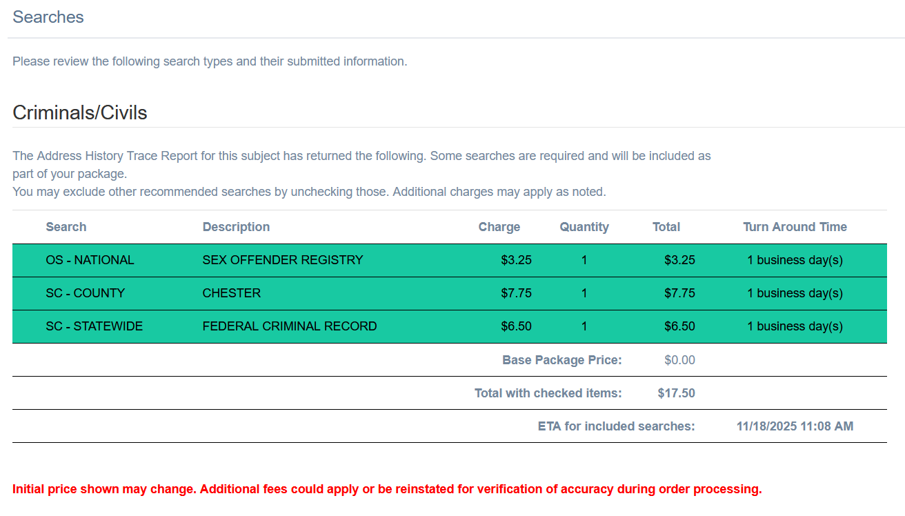 Aegis allows you to place Custom Orders when you need specific searches that do not fit into an existing package your organization already uses. Custom Orders are priced a la carte, unlike bundled packages that may already be set up for your account.