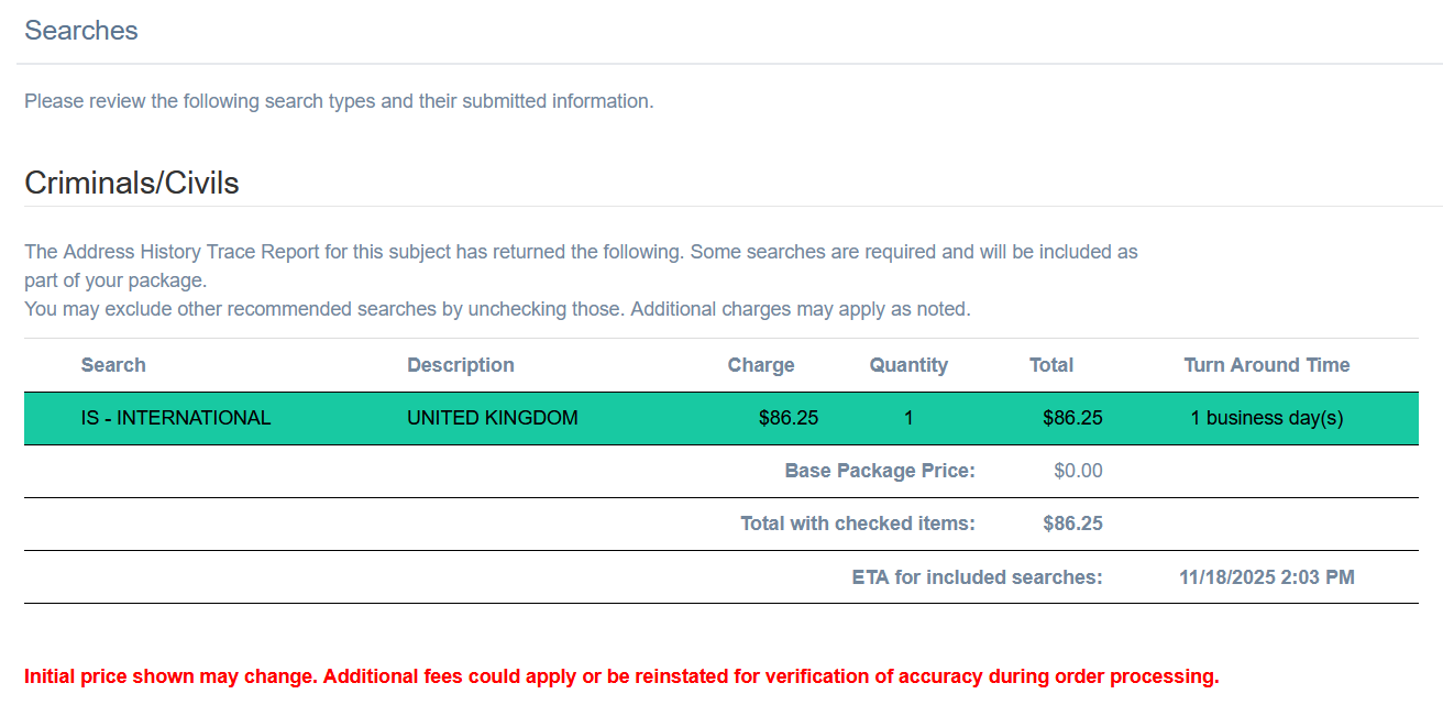 Bchex offers a variety of International Background Checks. These searches require special documentation and must always be submitted as a Custom Order by an account user.