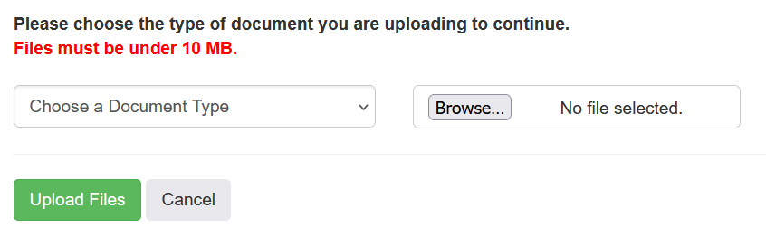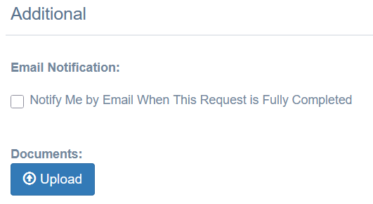 Just below this section, you’ll see an option to Upload Files. Upload any required documents you have already collected to help ensure the order can begin processing as quickly as possible. If you are still waiting on additional information, you may submit the order; however, processing cannot begin until all required documents have been provided.