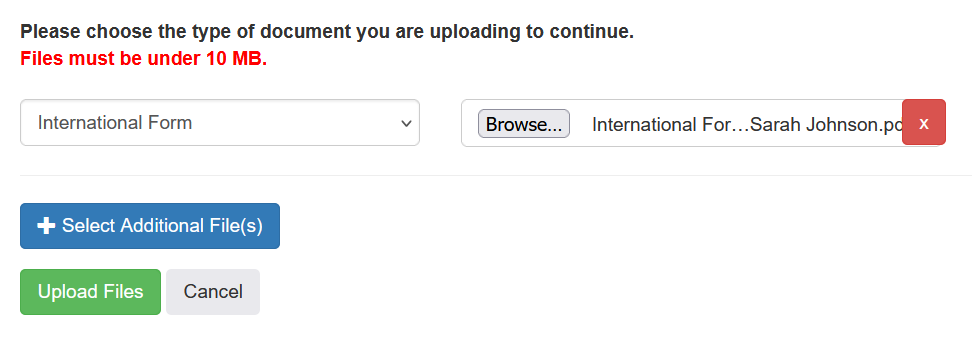 Select additional files if necessary, and then click Upload Files once you are ready to proceed: